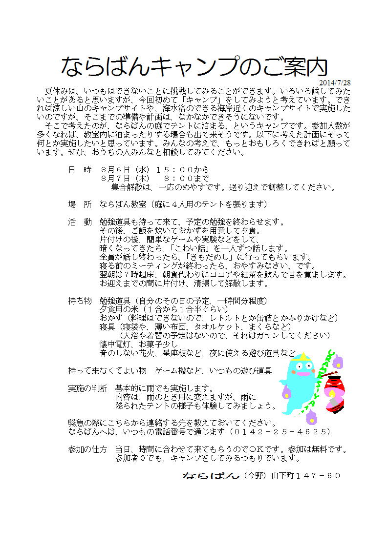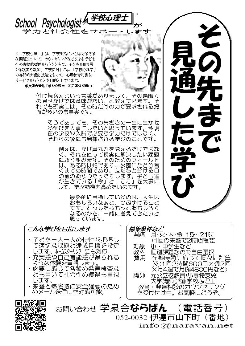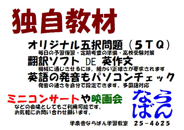 フェイスブックに最新情報を載せています。どうぞ、ご覧ください。→学泉舎ならばんFB