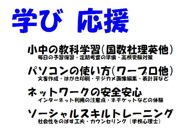 ・ 子どもの学習だけではなく、大人向けのパソコン活用やネットワーク利用(セキュリティの実習など)